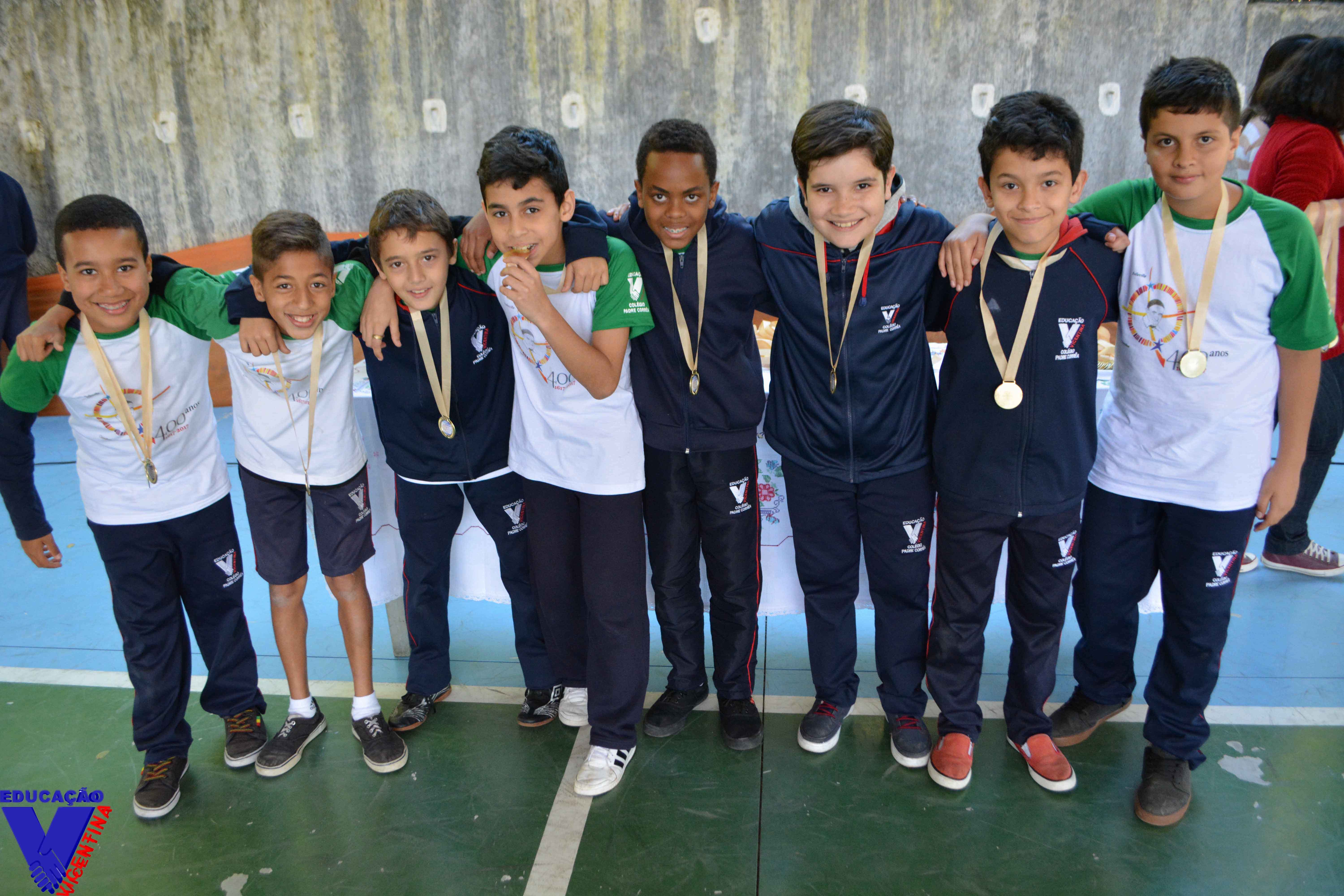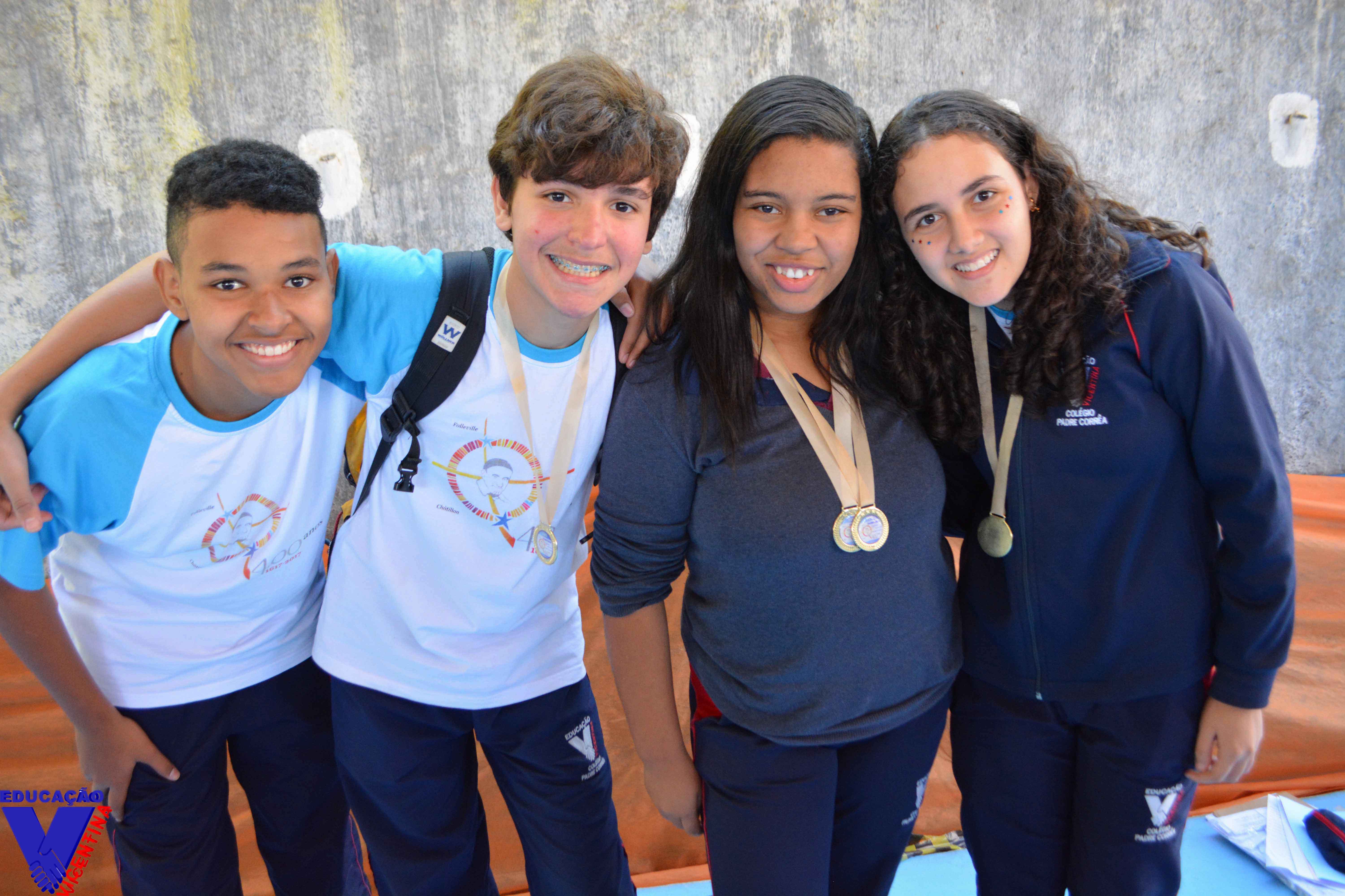 Eventos Olimpíadas Durante o mês de julho foi realizada a XXVI Olimpíada Interna do Colégio Vicentino Padre Corrêa para os alunos do Ensino Fundamental II. O evento que é realizado com o objetivo de incentivar a integração e socialização de nossos alunos e a prática desportiva, acontece a cada 2 anos e teve início no dia 04 de julho com o tradicional “Desfile de abertura”. O espetáculo foi apresentado pelos alunos, sempre com a orientação dos profissionais de Educação Física. Durante a semana seguinte os alunos do 6º ao 9º ano competiram em várias modalidades, algumas individuais e outras por equipe. O evento oferece a oportunidade de diversas vivências esportivas e valoriza o respeito às diferentes possibilidades de participação. No dia 14 de julho, aconteceu a última prova da competição, uma animada maratona pelas ruas do bairro. Em um primeiro momento, os atletas saíram da marca inicial (Folleville) e fizeram o revezamento de bastão até o ponto de chegada (Châtillon), em seguida aconteceu a corrida individual de 300 metros. Ao termino do evento, aconteceu a cerimônia de premiação com entrega de medalhas às equipes e aos atletas que se destacaram na competição