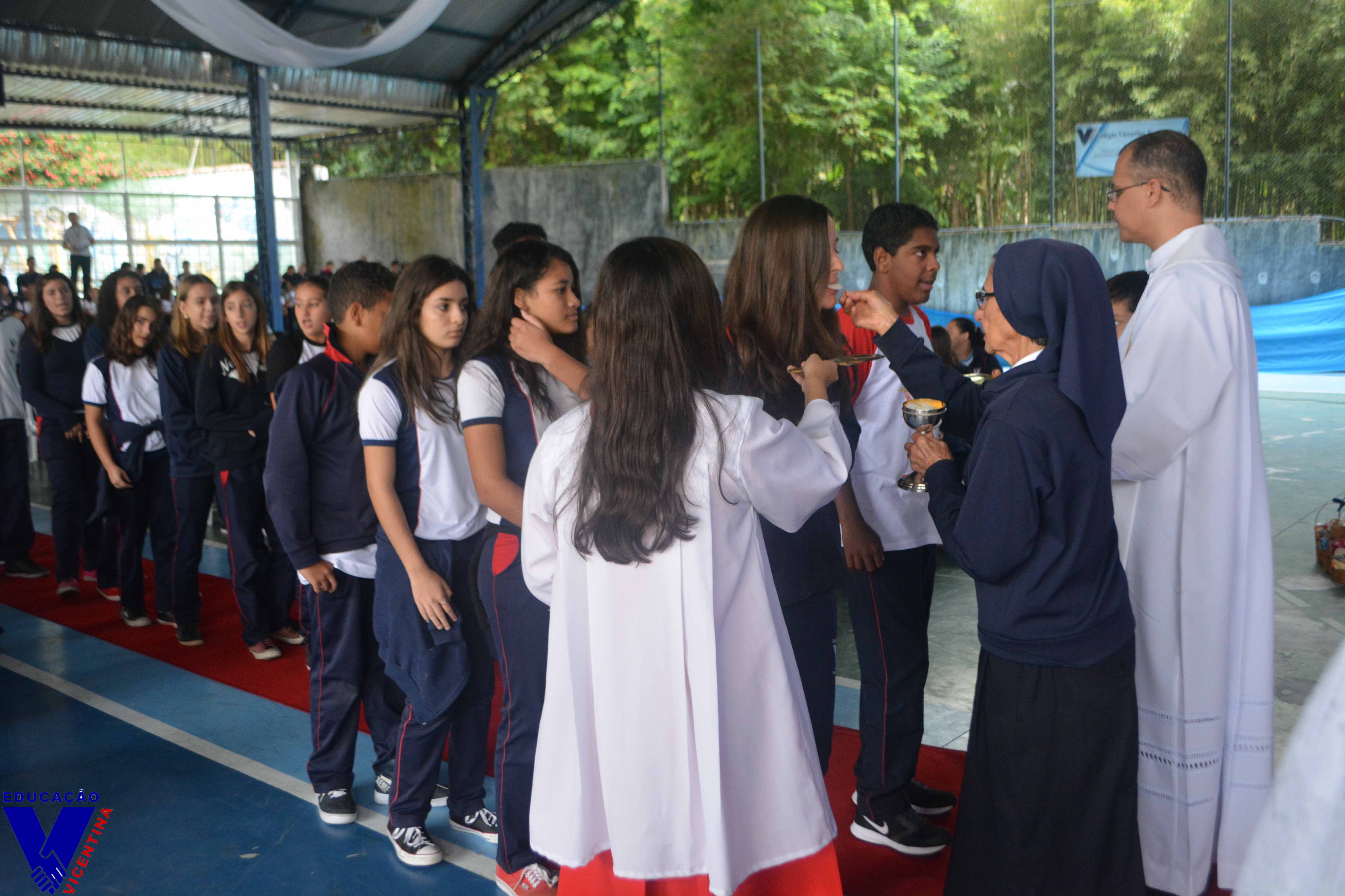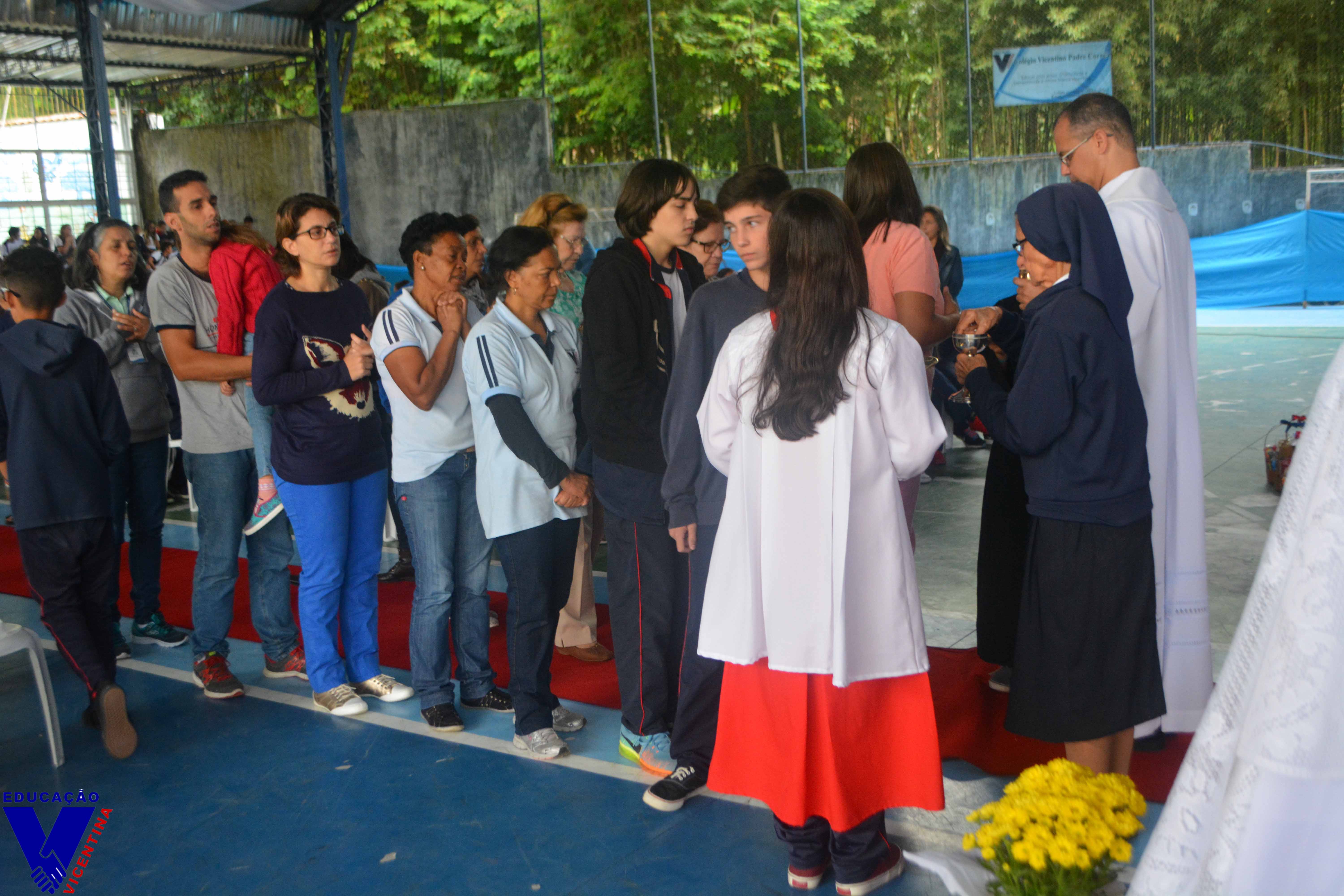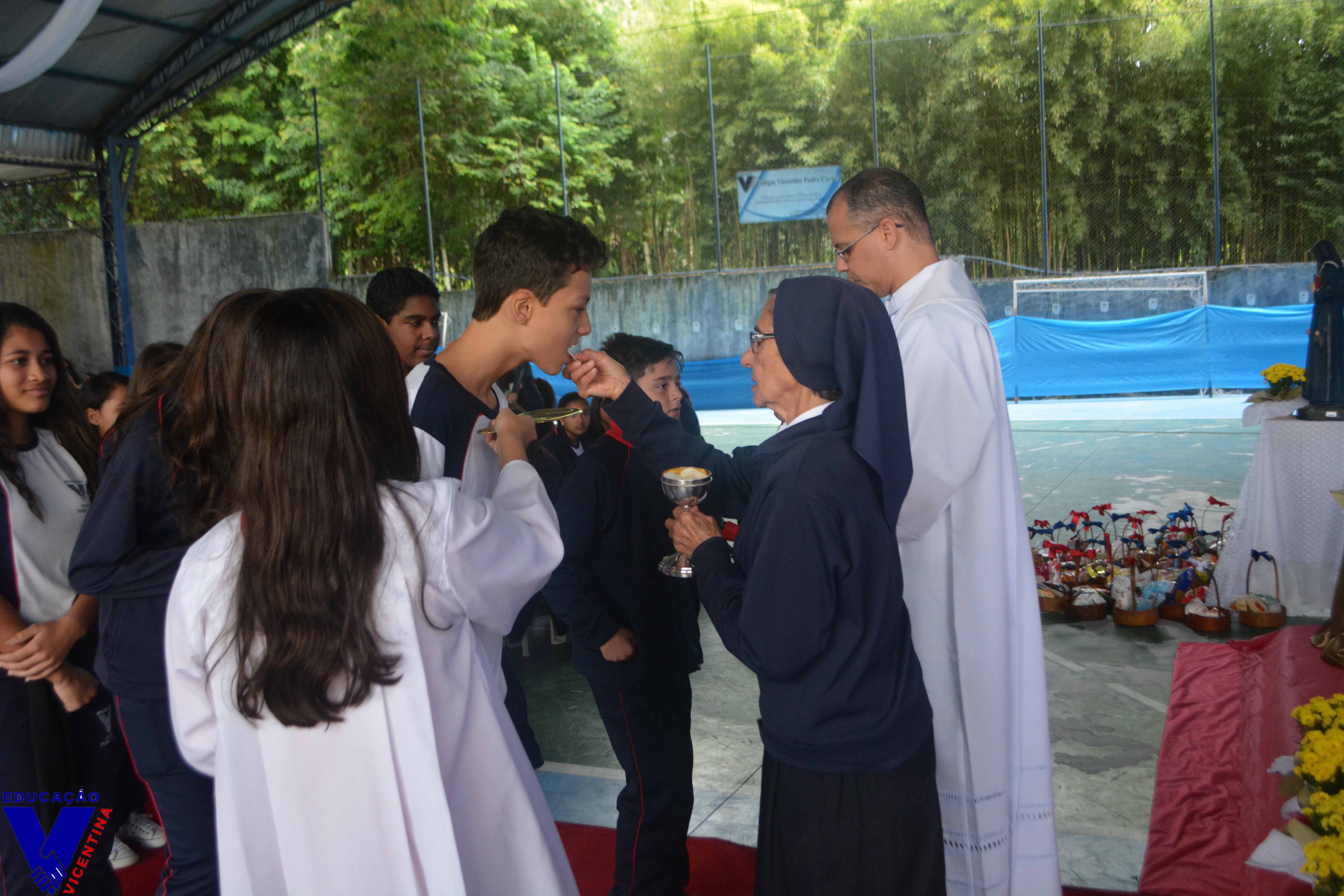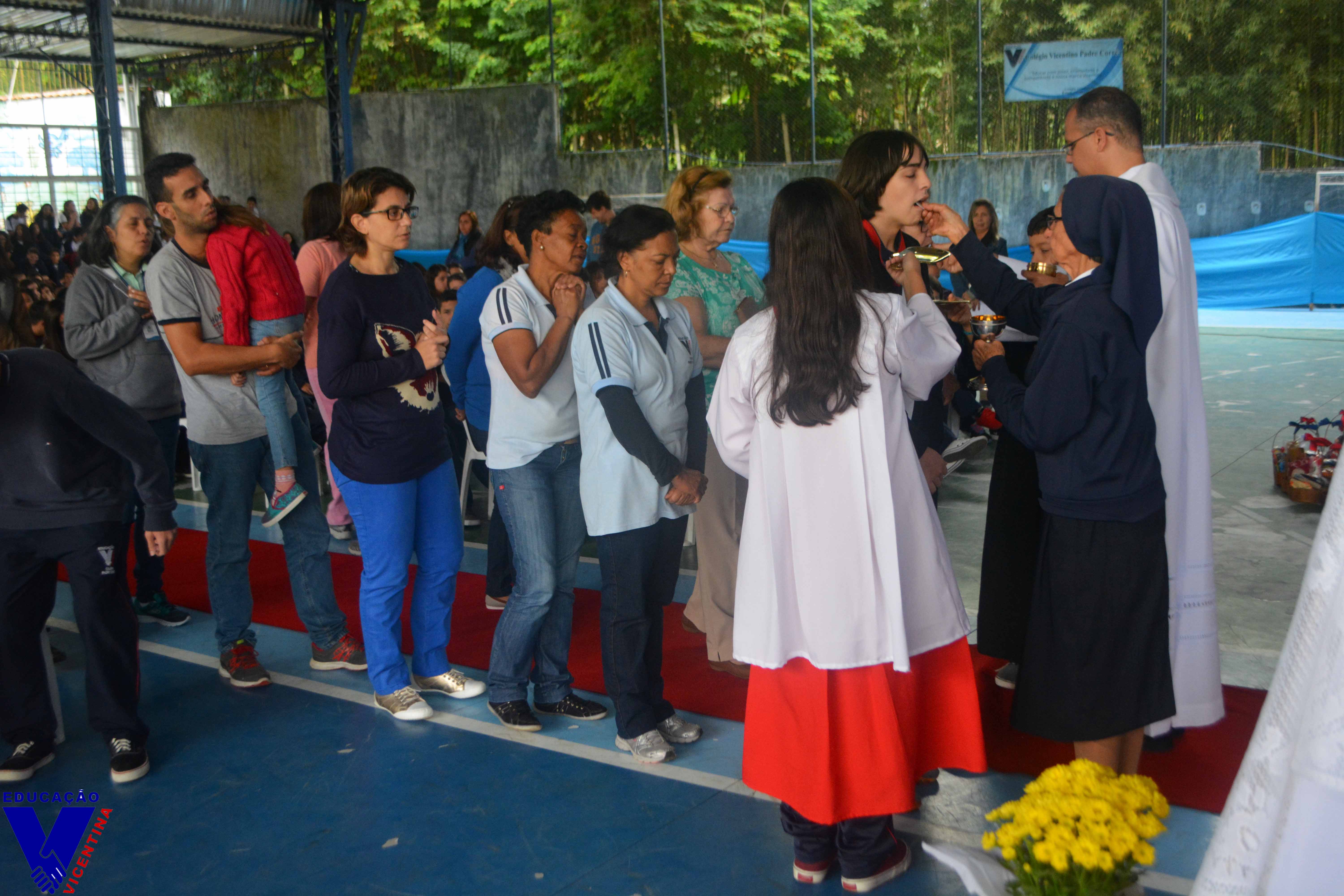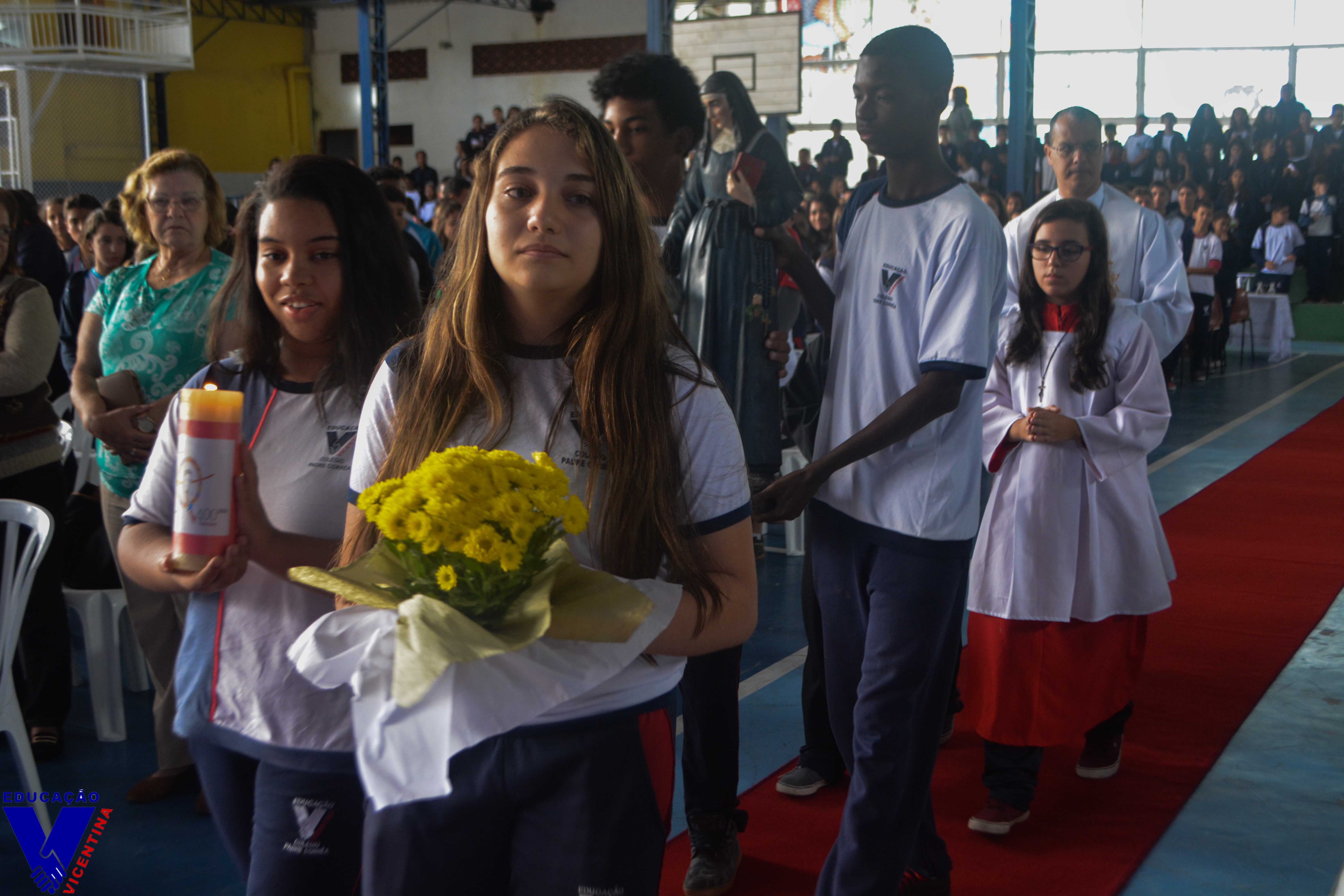 Eventos 09 DE MAIO - SANTA LUISA DE MARILLAC No ano que celebramos o quarto centenário da fundação do Carisma Vicentino, a comunidade educativa do Colégio Vicentino Padre Corrêa se reuniu no dia 09 de maio para celebrar a festa de nossa fundadora, Santa Luísa Marillac. Pe Rogério Carvalho de Oliveira, ex-aluno da instituição, realizou em nosso colégio uma belíssima celebração à memória de Santa Luísa de Marillac, na qual partilhou a alegria em fazer parte da família vicentina e ressaltou a importância da Companhia das Filhas da Caridade no mundo. Luísa de Marillac foi uma mulher de extraordinária doação e ação em favor dos pobres e sofredores. Nasceu na França, no dia 12 de agosto de 1591. Sua vida foi marcada por muitos acontecimentos. Em 21 de dezembro de 1625, recebeu o convite de São Vicente de Paulo para trabalhar com os pobres. E no dia 29 de novembro de 1633, com São Vicente de Paulo, fundou a Companhia das Filhas da Caridade a qual pertencem nossas Irmãs do Colégio Vicentino Padre Corrêa. Santa Luísa faleceu no dia 15 de março de 1660 e foi canonizada em 11 de março de 1934 pelo Papa Pio XI . Foi declarada pelo Papa João XXIII padroeira das obras sociais cristãs. Para a festividade de nossa Padroeira, foi realizado no colégio uma grande campanha de arrecadação de alimentos, itens de higiene pessoal e fraldas geriátricas. Os itens arrecadados foram entregues no altar na hora do ofertório, e encaminhados às famílias carentes da região. Que a exemplo de Santa Luísa de Marillac, possamos nos dedicar inteiramente a Deus através daqueles que mais necessitam. Ao final da celebração, a equipe pedagógica prestou uma homenagem aos alunos que em 2016 participaram da OBMEP e foram premiados com Mensão Honrosa. O momento foi de grande emoção para os alunos e seus familiares presentes.